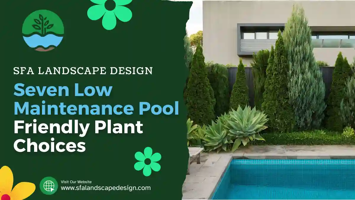 Seven Low Maintenance Pool Friendly Plant Choices provide lush greenery, simple care, and timeless appeal for stylish poolside landscaping.